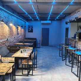 В интерьере кафе «#Истории» минимализм и лофт: открытая планировка, особое внимание к фактурам, брутальный фабрично-заводской стиль и многогранная игра с освещением. Также здесь есть большой экран, Xbox и VIP-комната.